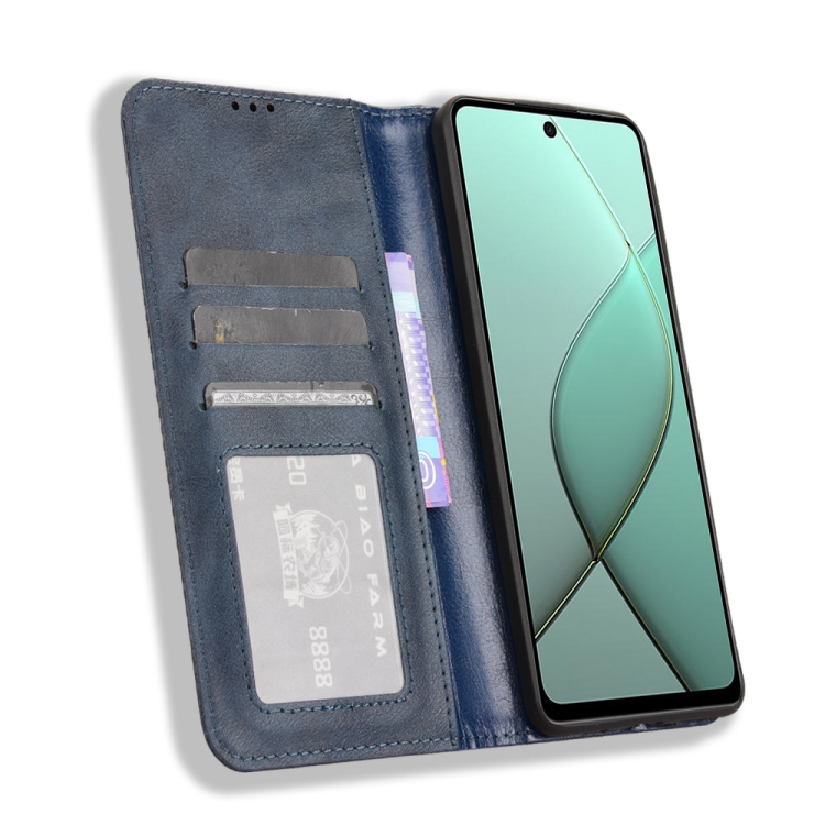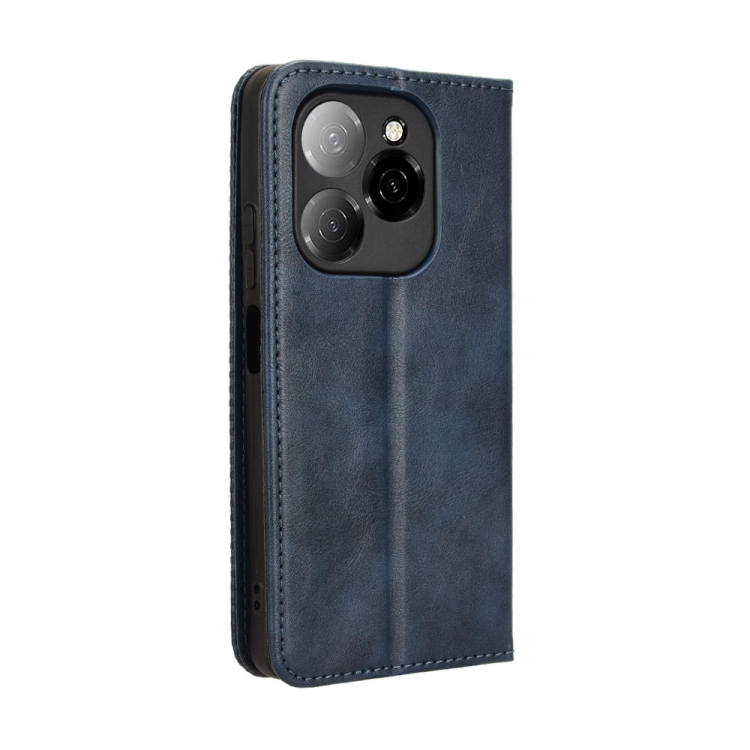 Funda de Cuero para Tecno Spark 20 Pro 5G con Textura Retro y Hebilla Magnética (Azul)