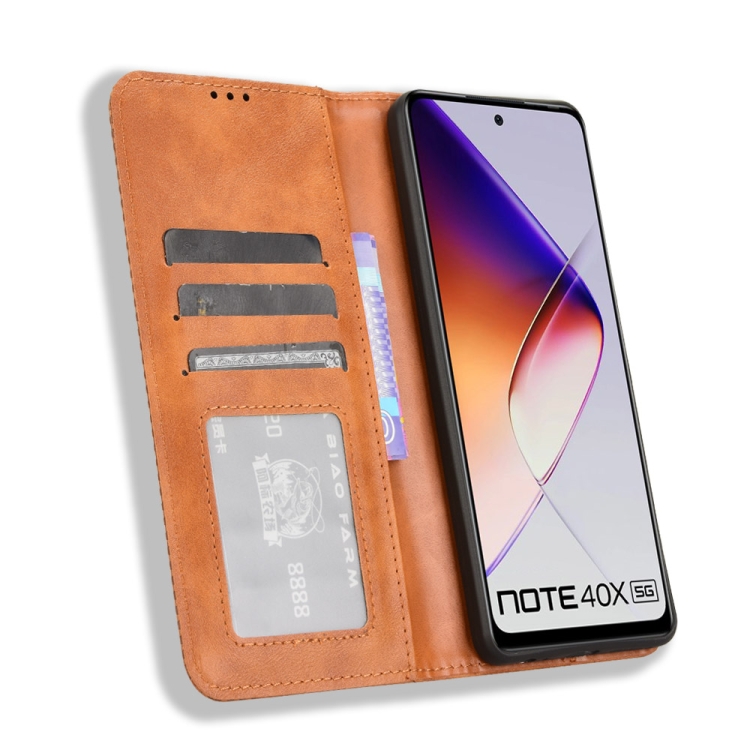 Funda de Cuero Textura Retro con Hebilla Magnética para Infinix Note 40X 5G X6838 (Marrón)