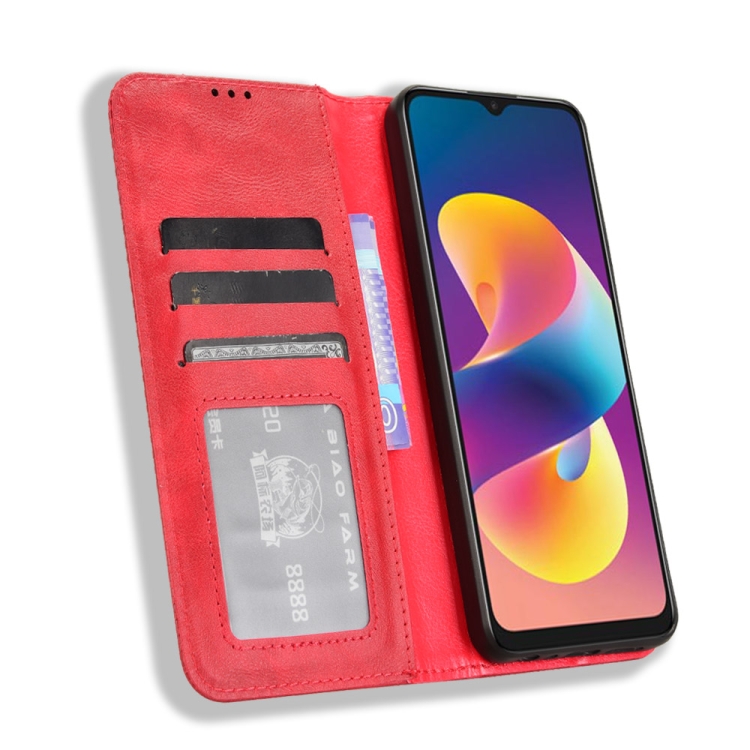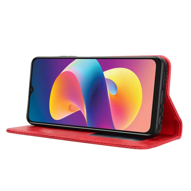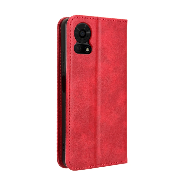 Funda de Cuero TCL 50 Le con Textura Retro y Hebilla Magnética (Rojo)