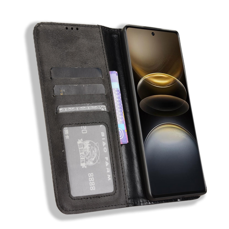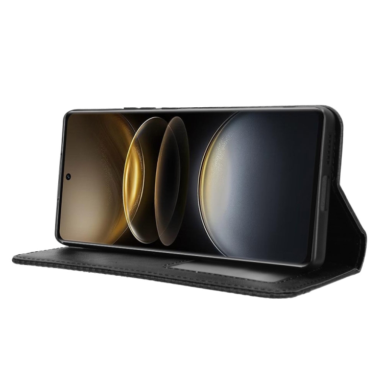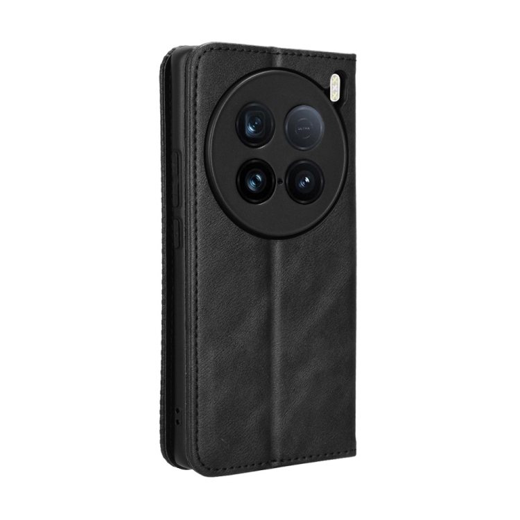 Funda de Cuero con Textura Retro y Hebilla Magnética para Vivo X100 Ultra 5G (Negro)