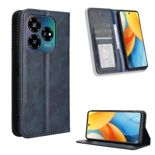 Funda de Cuero ZTE Blade V60 Textura Retro Hebilla Magnética (Azul)