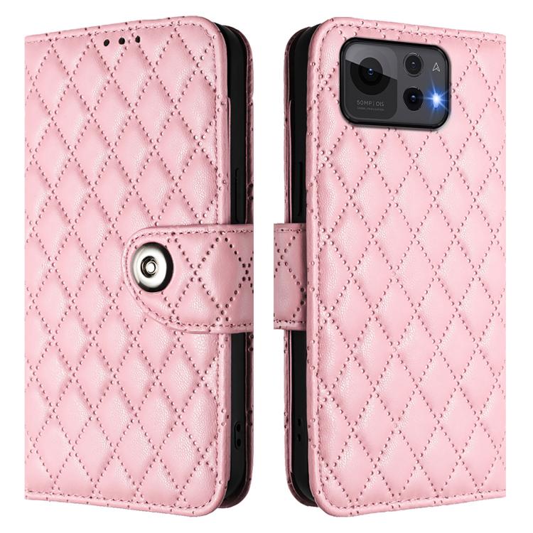 Funda de Cuero con Textura Rómbica y Cordón para Asus Zenfone 12 Ultra (Rosa)