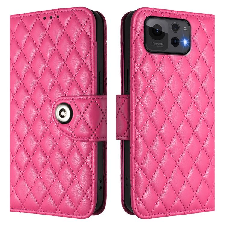 Funda de Cuero con Textura Rómbica y Cordón para Asus Zenfone 12 Ultra (Rosa)