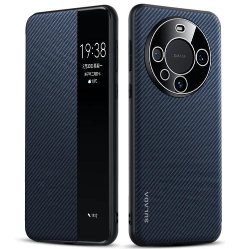 • 1x Funda de Cuero con Ventana Inteligente y Textura Kevlar 600D para Huawei Mate 60 (Azul)