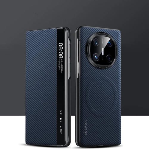 Funda de Cuero con Ventana Inteligente y Textura Kevlar 600D para Huawei Mate X6 (Azul)
