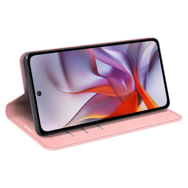 Funda de Cuero con Ventosa Magnética para Motorola Moto G 5G (2025) Retro-Skin (Rosa)
