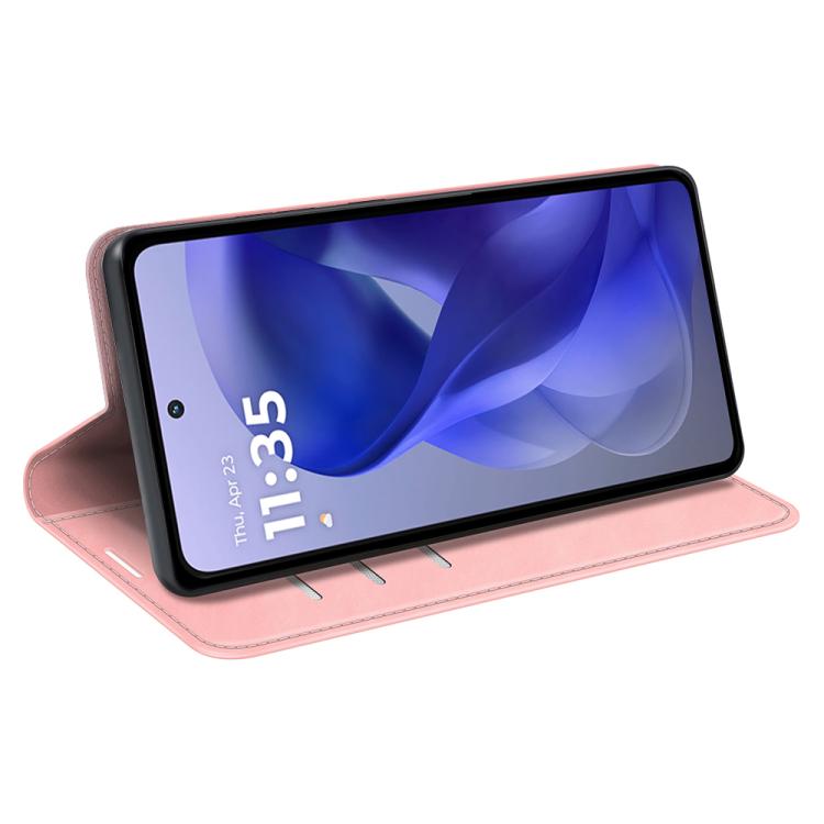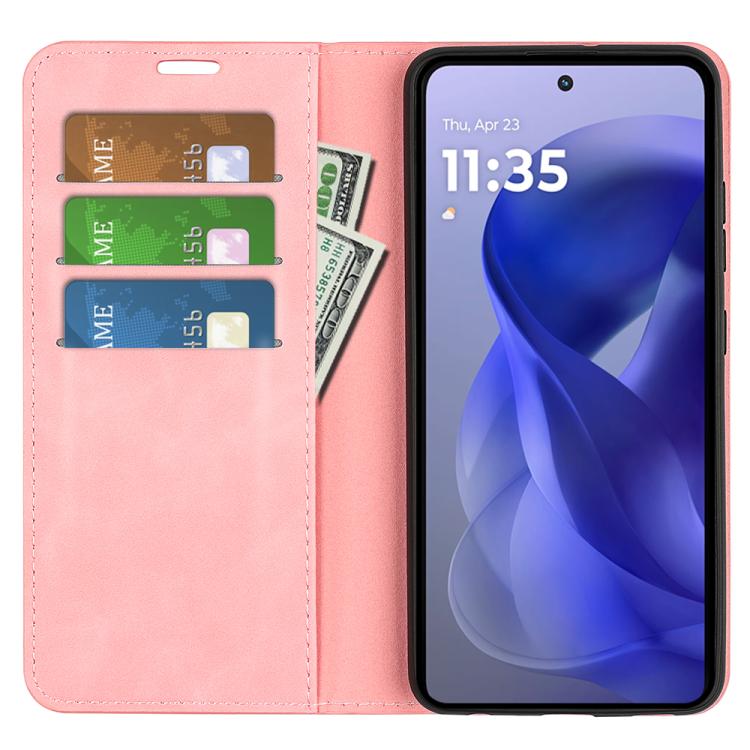 Funda de Cuero con Ventosa Magnética para Motorola Moto G Power 2025 Retro-Skin (Rosa)