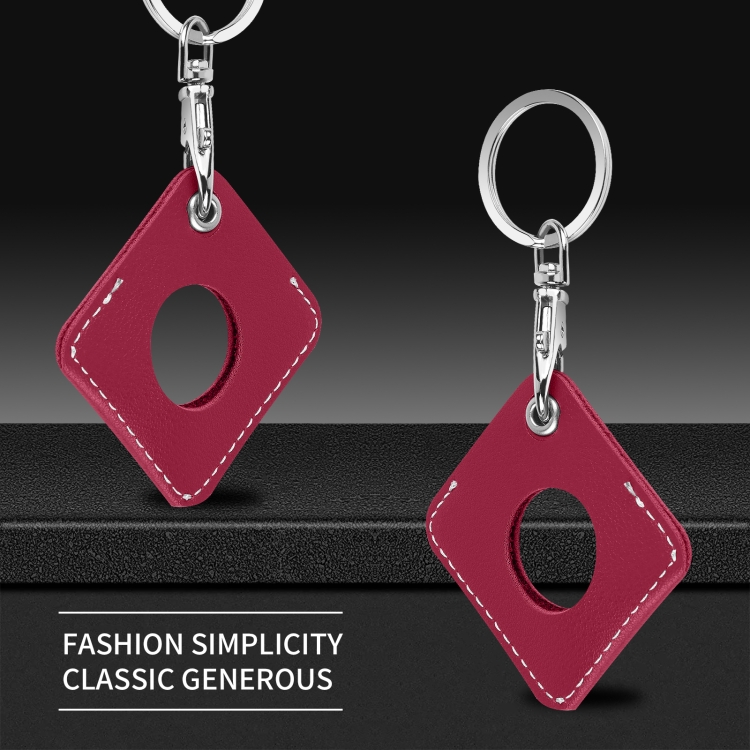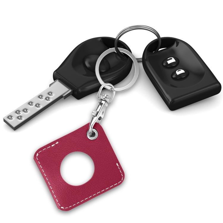 Funda Cuadrada de Cuero para AirTag a Prueba de Golpes con Llavero (Rose Rojo)