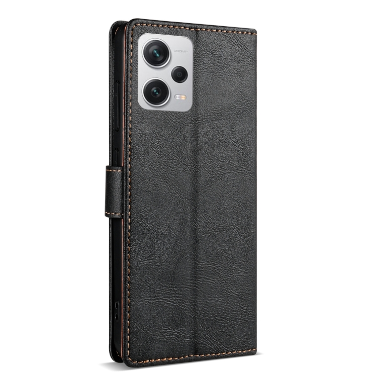Funda de Cuero de Color Sólido N.Bekus Csj-P1 para Redmi Note 12 Pro 5G Global (Negro)