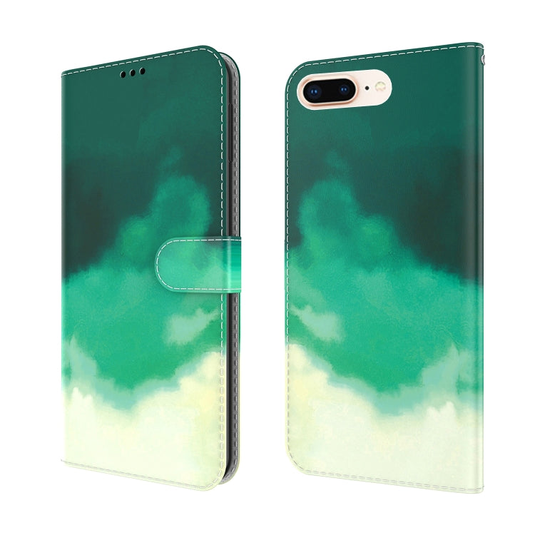 Funda de Cuero Flip Horizontal Patrón Acuarela con Soporte Ranura Tarjeta Billetera para iPhone 8 Plus y 7 Plus (Cian Green)