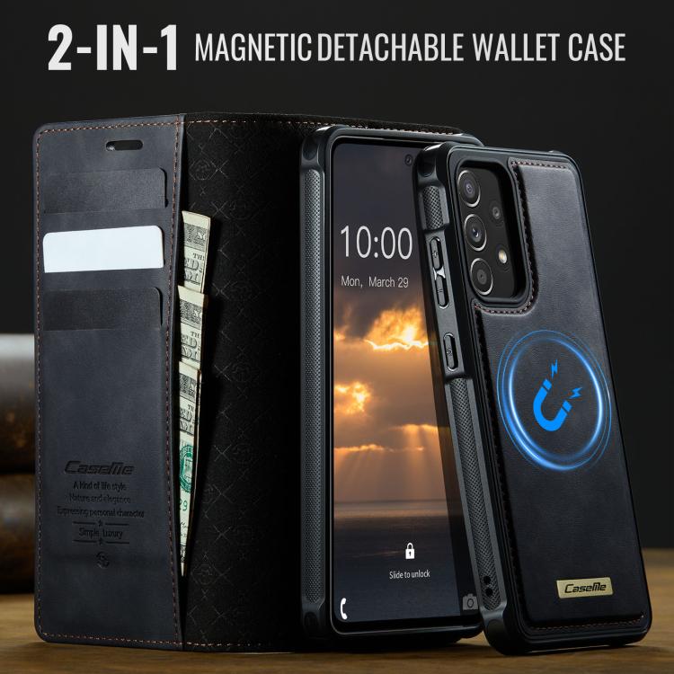 Funda de cuero desmontable CaseMe C49 con bloqueo RFID magnético para Samsung Galaxy A52/A52s (negra)