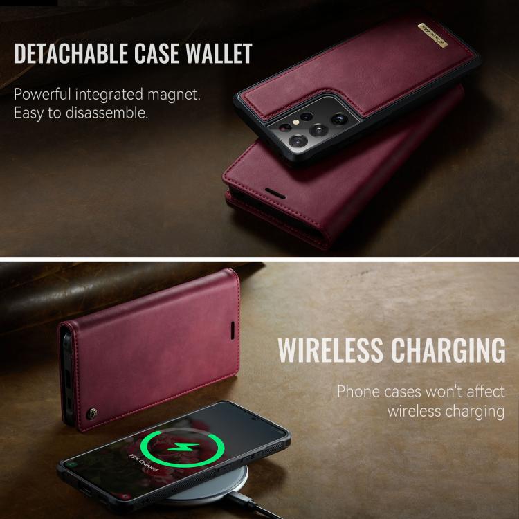 Funda de cuero desmontable con bloqueo RFID magnético para Samsung Galaxy S21 Ultra 5G CaseMe C49 (roja)