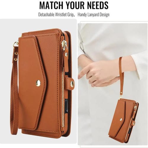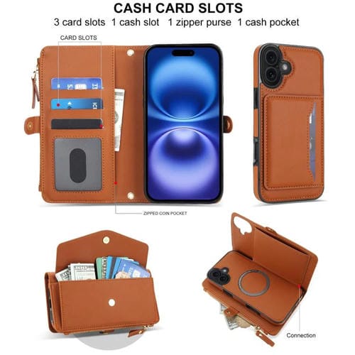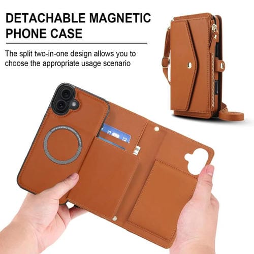 Funda de cuero desmontable con cordón para iPhone 17 (marrón)