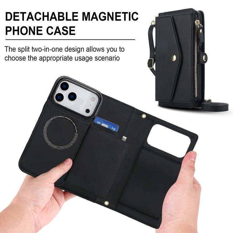 Funda de cuero desmontable con cordón para iPhone 17 Pro (negro)