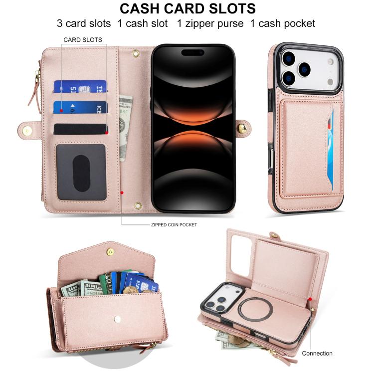 Funda de cuero desmontable con cordón para iPhone 17 Pro (oro rosa)