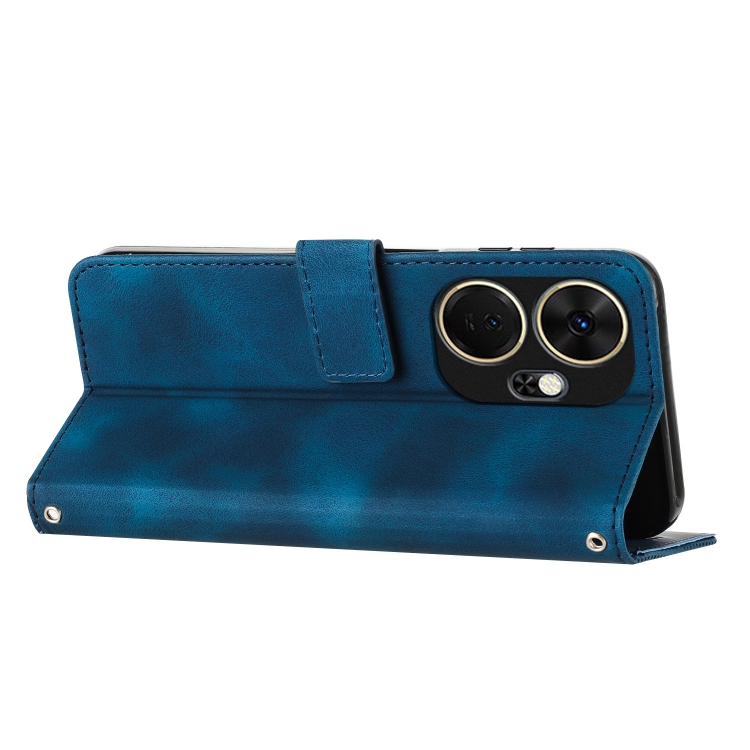 Funda de Cuero Dream Triangle para Itel P55+ con Cordón Largo (Azul)