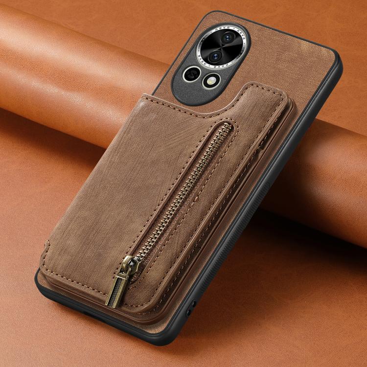 Funda de Cuero Retro con Cremallera y Billetera para Huawei Enjoy 70 (Marrón)