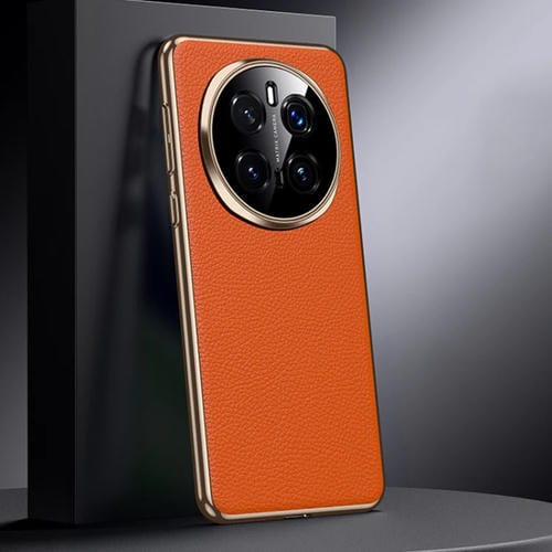 Funda de Cuero Genuino con PC para Honor Magic7 Pro (Naranja)
