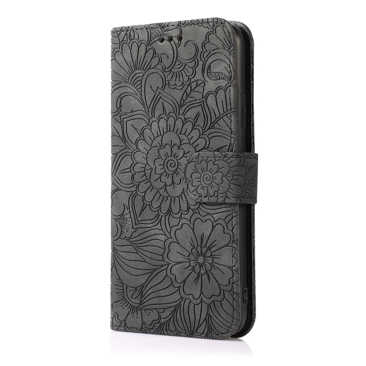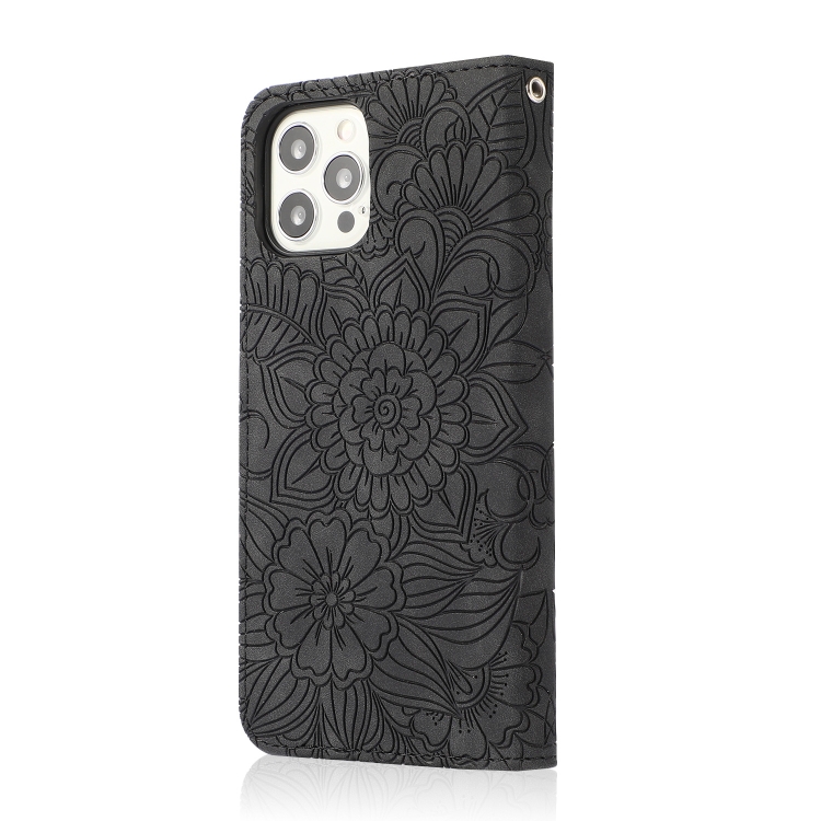 Horizontal Sunflower Embossed Leather Case for iPhone 13 Pro Skin Feel (Black)