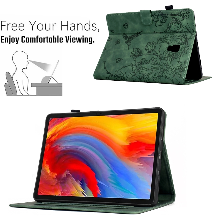 Funda de Cuero Inteligente Samsung Galaxy Tab a 10.5 T590 Estampado Flores y Pájaros (Verde)