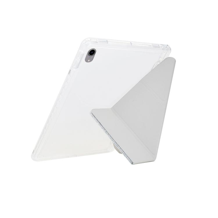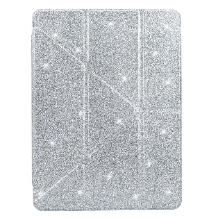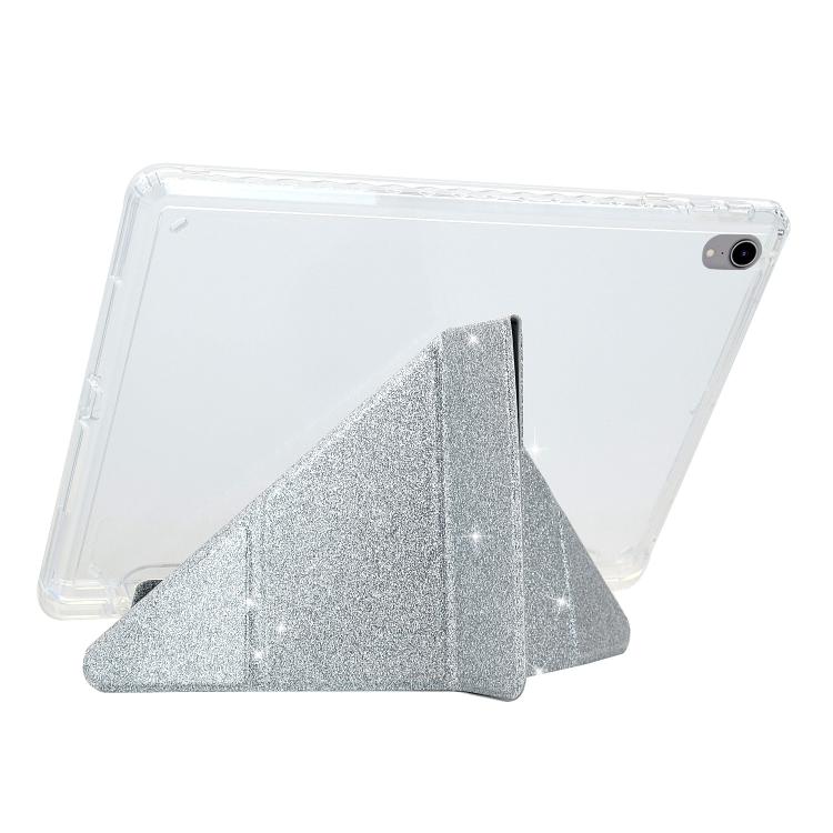 Funda de cuero inteligente con purpurina acrílica transparente plegable en Y para iPad mini 2024/mini 6 (plateada)