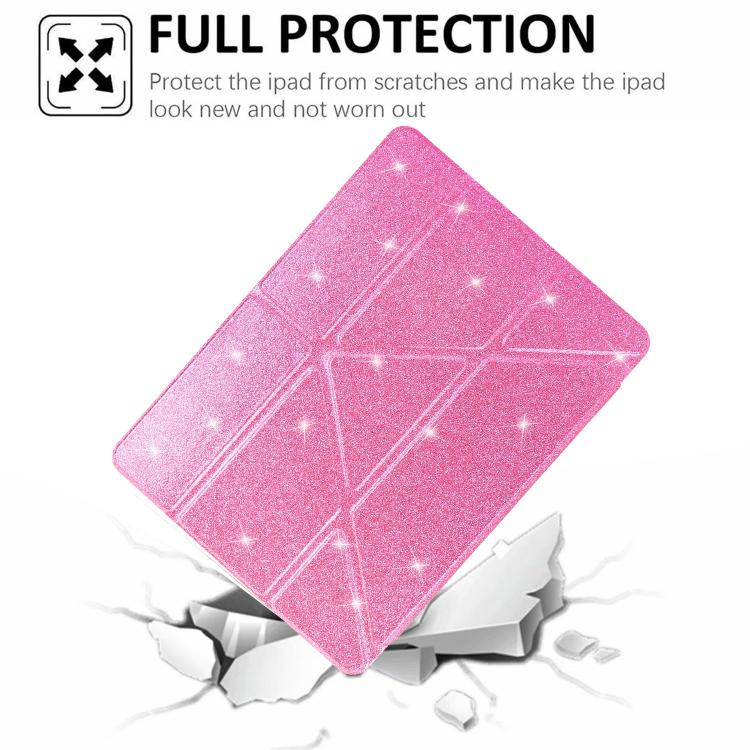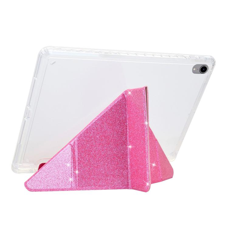 Funda de cuero inteligente con purpurina acrílica transparente plegable en Y para iPad mini 2024/mini 6 (rosa)