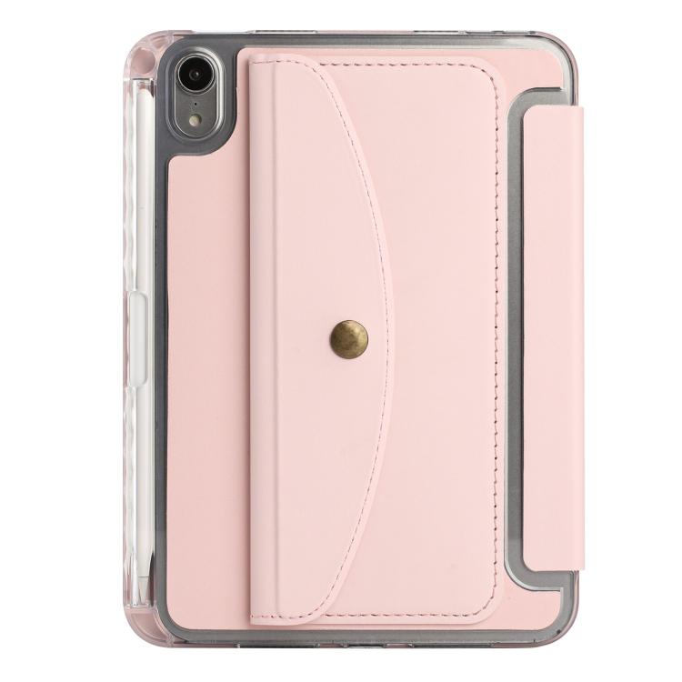 Funda de cuero inteligente con tapa tipo billetera y deformación para iPad mini 2024/mini 6 (rosa)