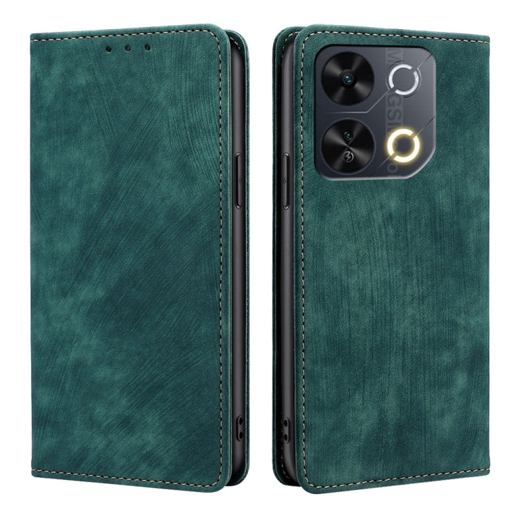Funda de Cuero Magnética con Cepillo Antirrobo RFID para Teléfono Itel P65 (Verde)
