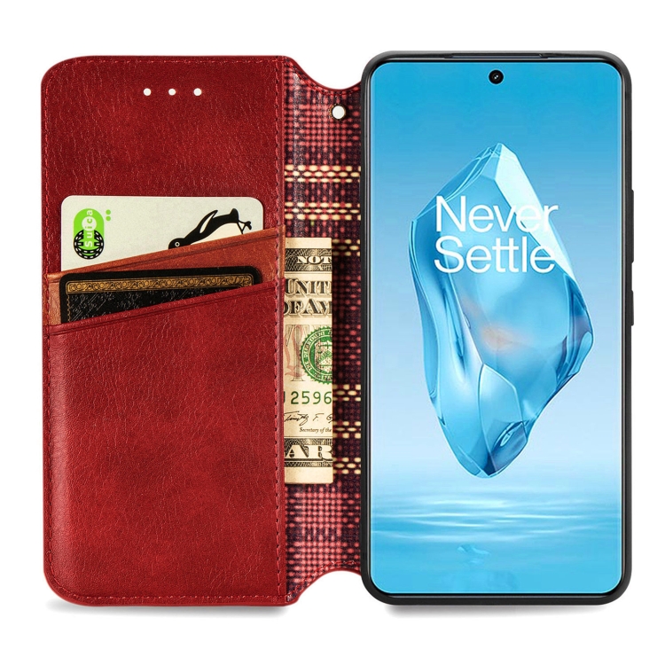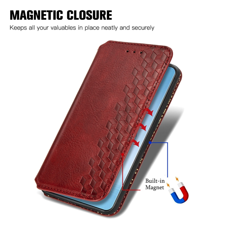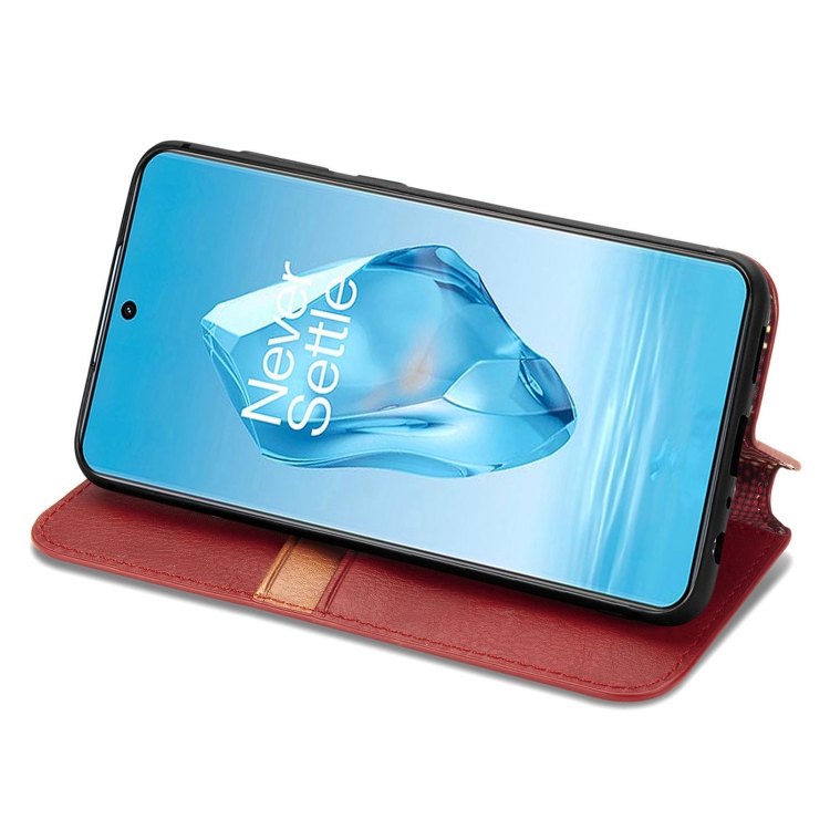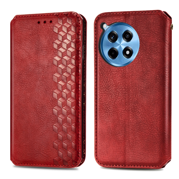 Funda de Cuero Magnética para OnePlus Ace 3 Pro con Diseño de Cuadrícula Cúbica (Roja)