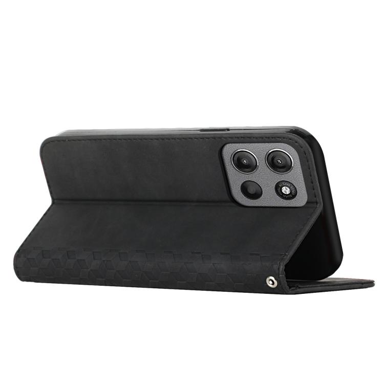 Funda de Cuero Magnética Motorola Moto G15 con Diseño de Diamante (Negra)