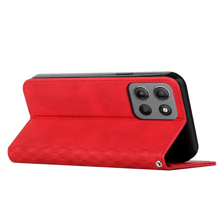 Funda de Cuero Magnética para Motorola Moto G15 con Diseño de Diamante (Rojo)