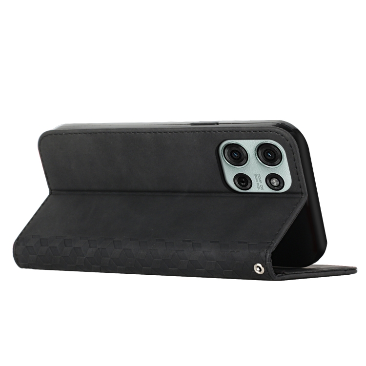 Funda de Cuero Magnética para Motorola Moto G75 con Diseño de Diamante (Negra)