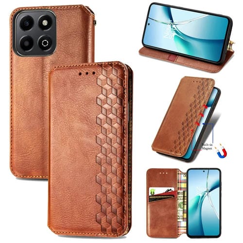 Funda de Cuero Magnética con Rejilla Cúbica para Honor 200 (Marrón)