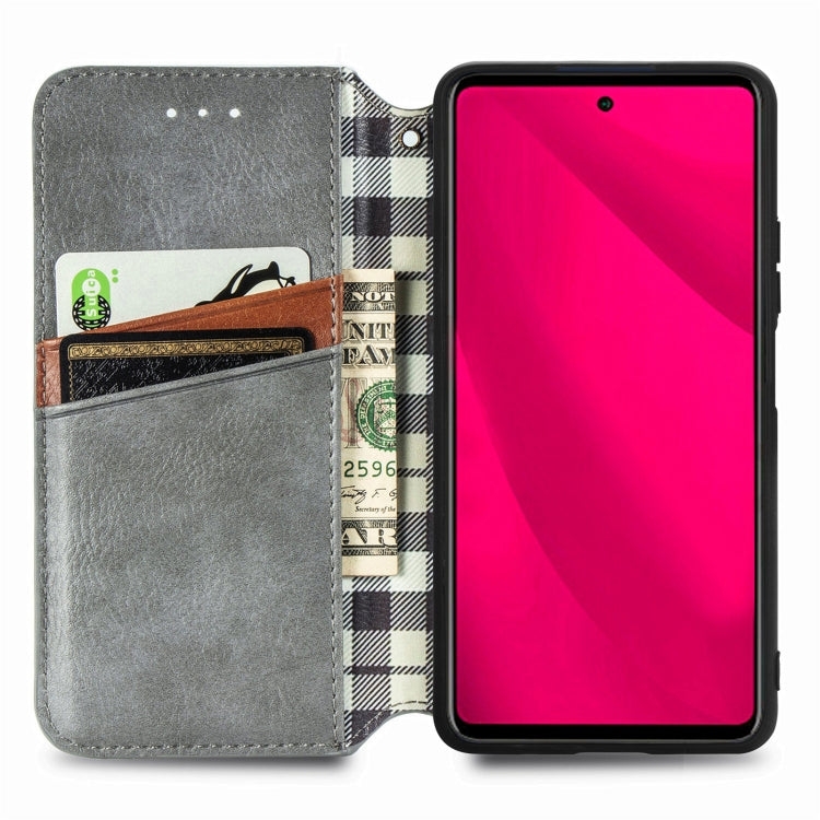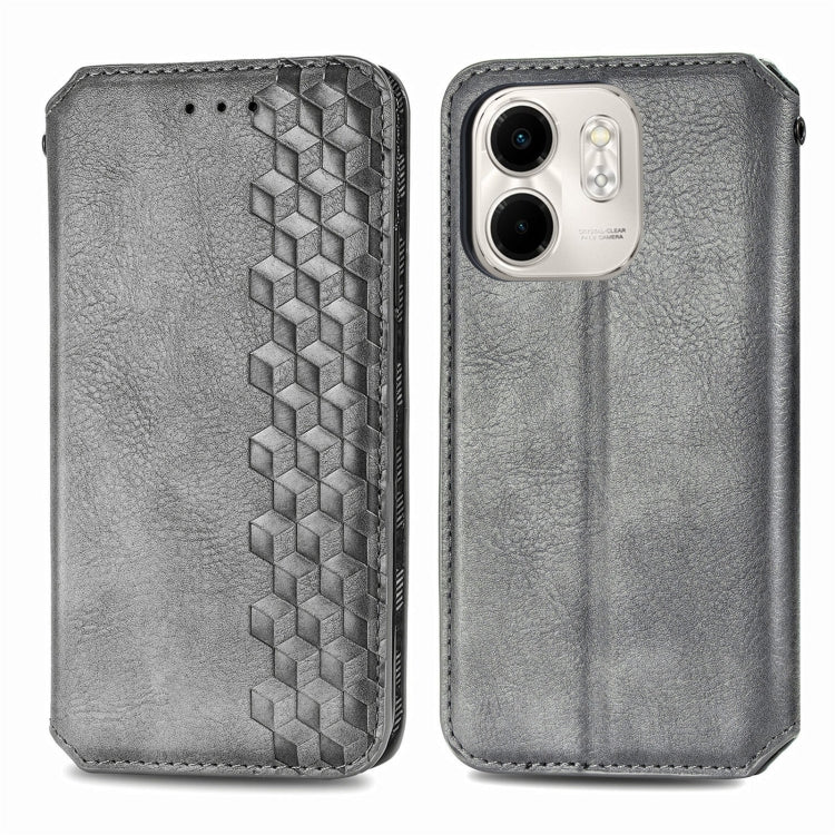 Funda de Cuero Magnética con Rejilla Cúbica Prensada para Infinix Smart 9 (Gris)