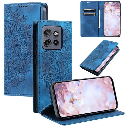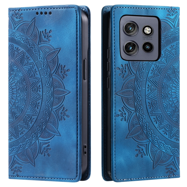 Funda de Cuero Magnética con Relieve Totem para Motorola Edge 50 Neo (Azul)