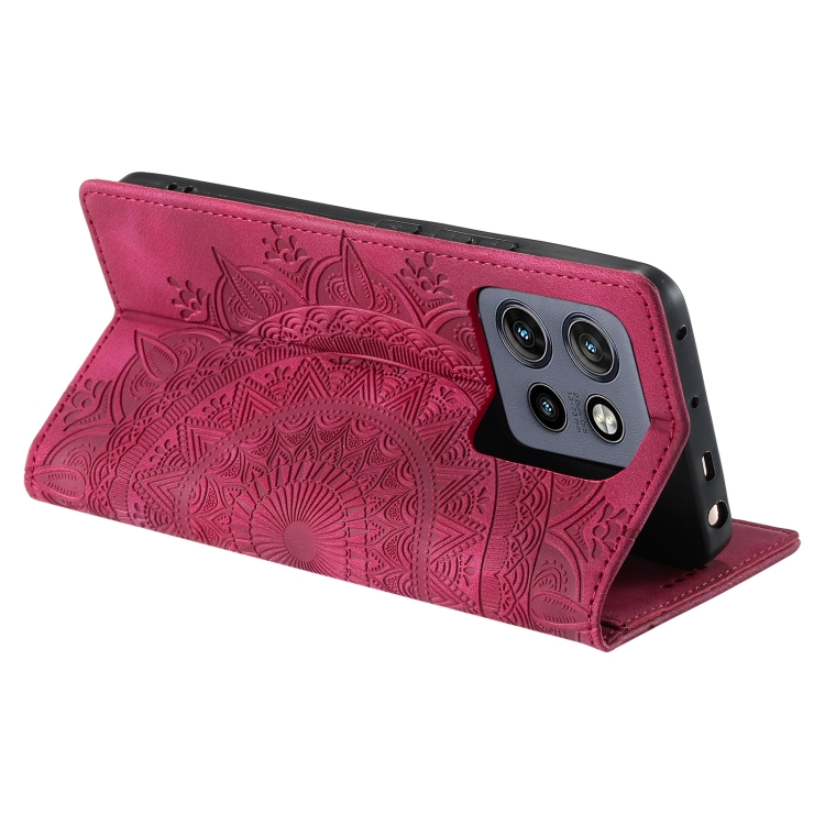 Funda de Cuero Magnética con Relieve Totem para Motorola Edge 50 Neo (Rojo)