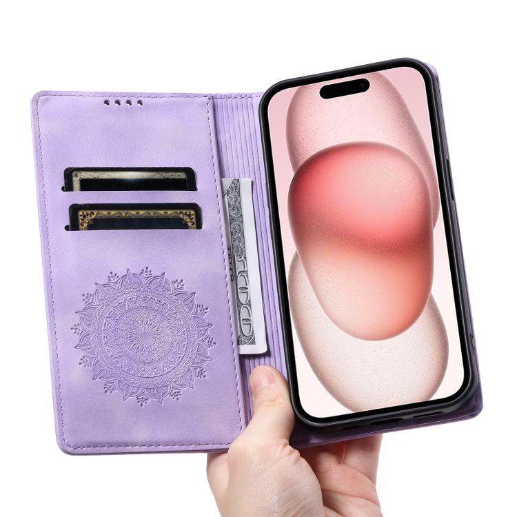 Funda de cuero magnética con relieve Totem para Motorola Edge 60 Pro (morada)