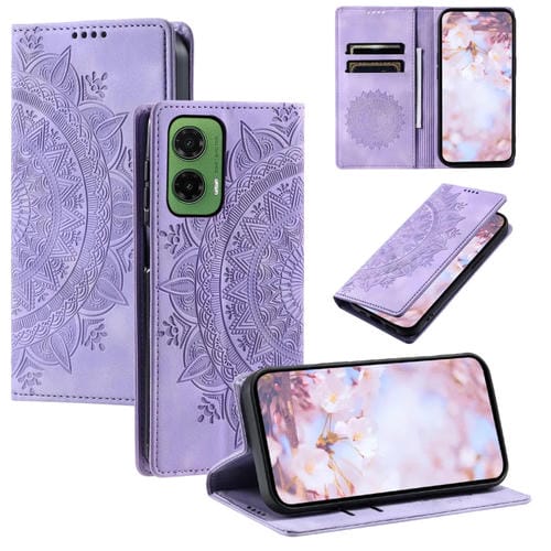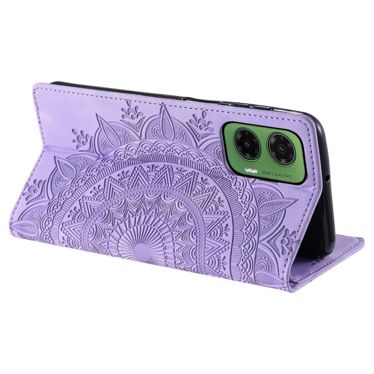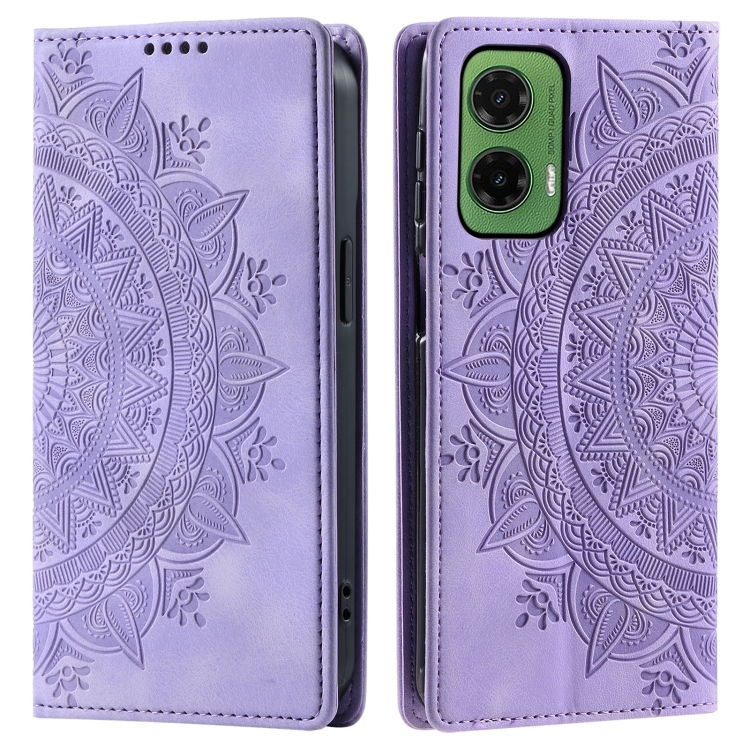 Funda de Cuero Magnética con Relieve Totem para Motorola Moto G35 (Morado)