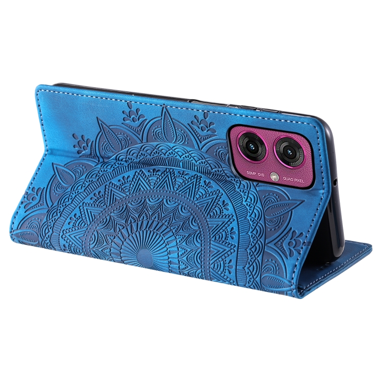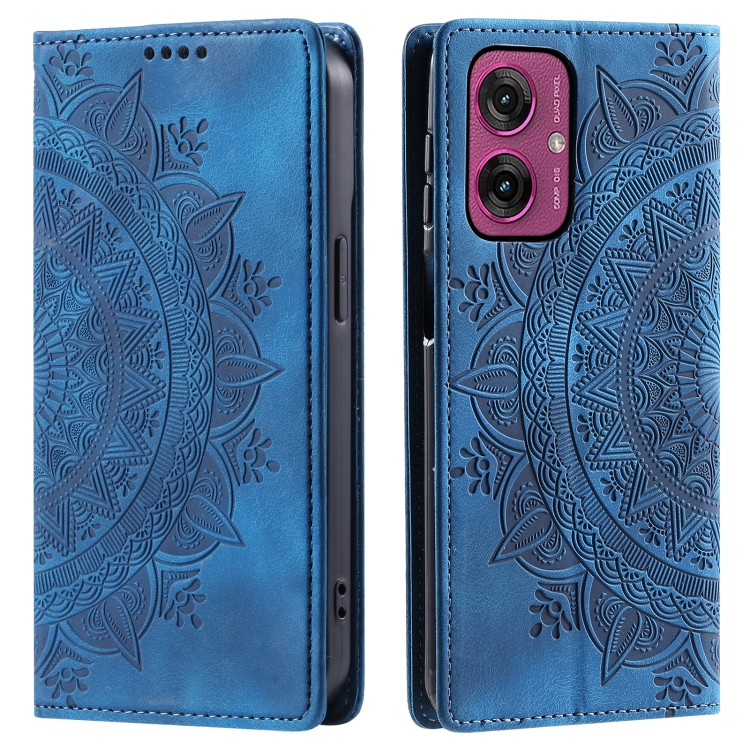 Funda de Cuero Magnética con Relieve Totem para Motorola Moto G55 (Azul)