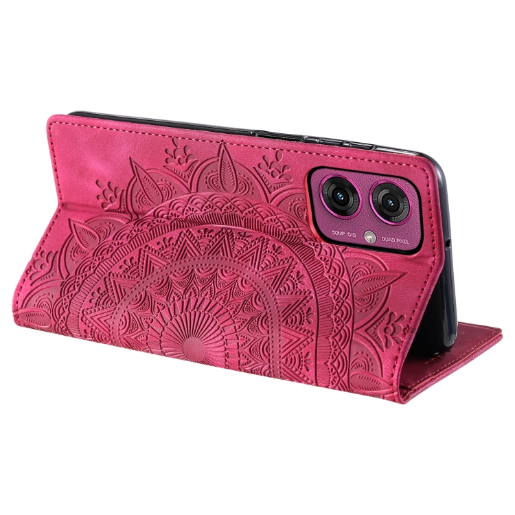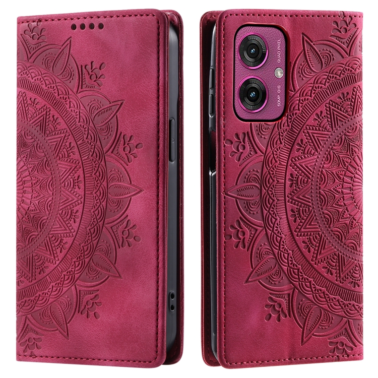 Funda de Cuero Magnética con Relieve Totem para Motorola Moto G55 (Rojo)