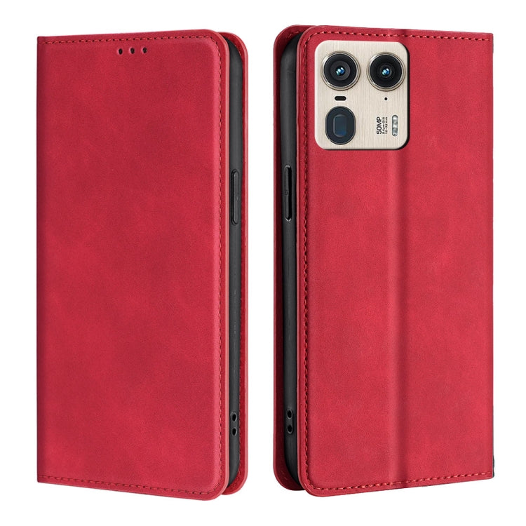 Funda de Cuero Magnética con Tacto de Piel para Motorola Edge 50 Ultra (Roja)