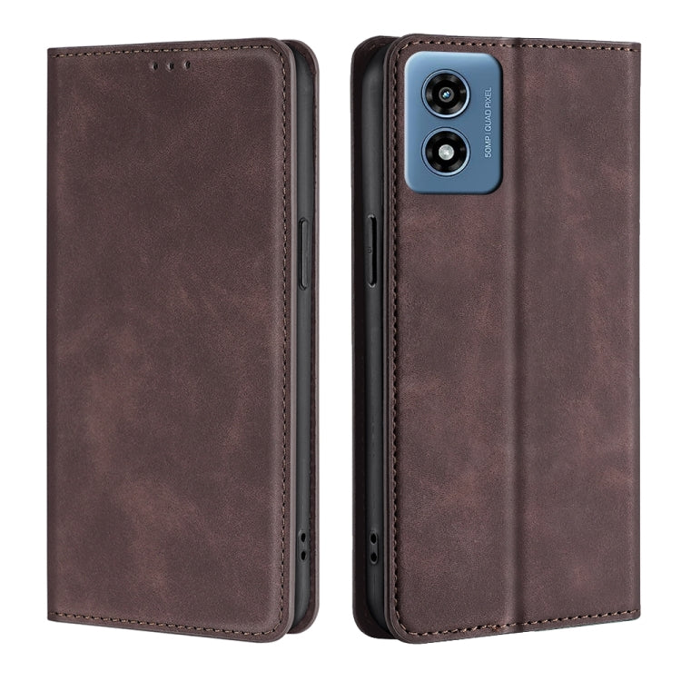 Funda de Cuero Magnética con Tacto de Piel para Motorola Moto G 5G (2024) (Marrón Oscuro)