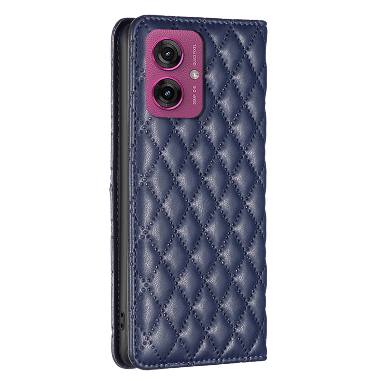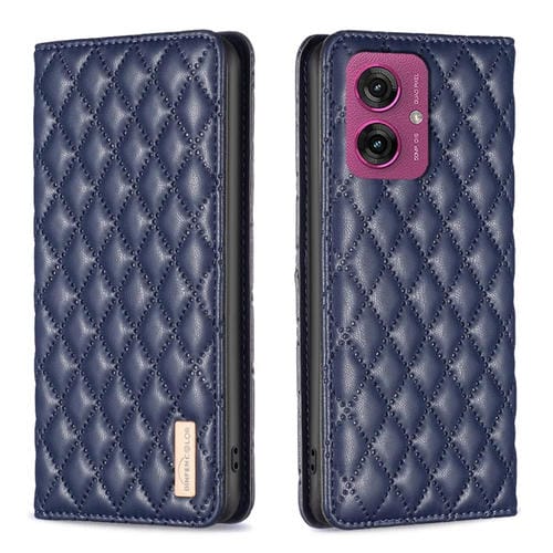 Funda de Cuero Magnética con Tapa Tipo Diamante para Motorola Moto G55 (Azul)