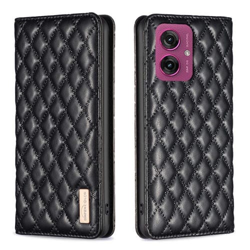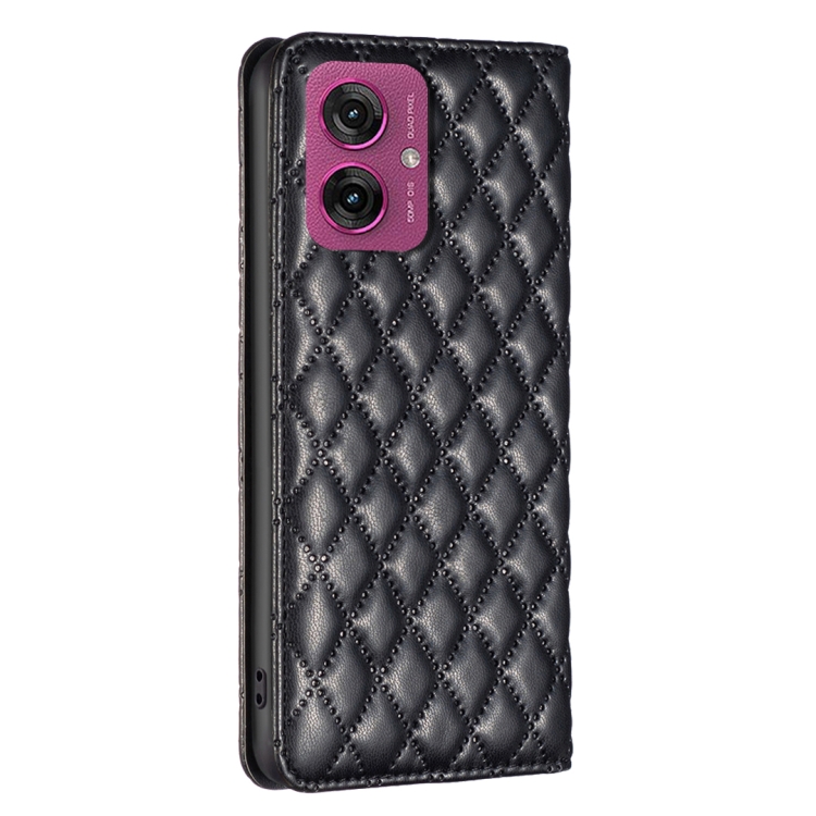 Funda de Cuero Magnética con Tapa Tipo Diamante para Motorola Moto G55 (Negra)