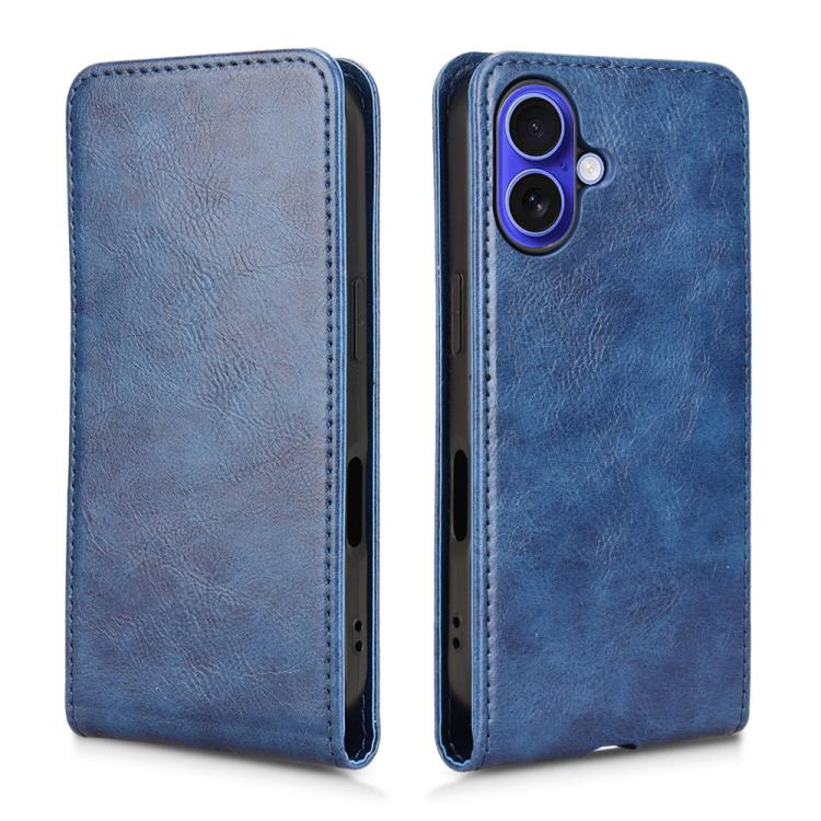 Funda de Cuero Magnética con Tapa Vertical para iPhone 16 Plus (Azul)