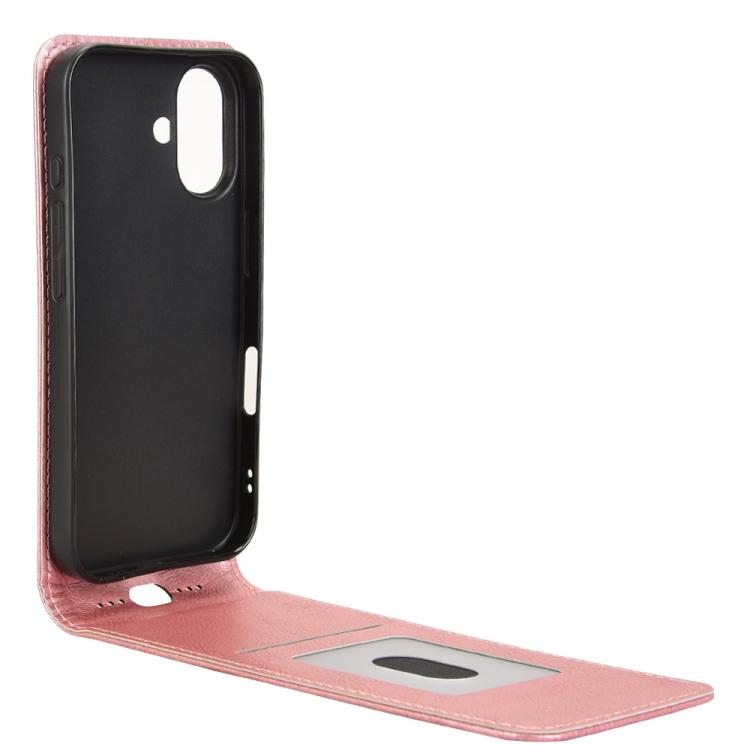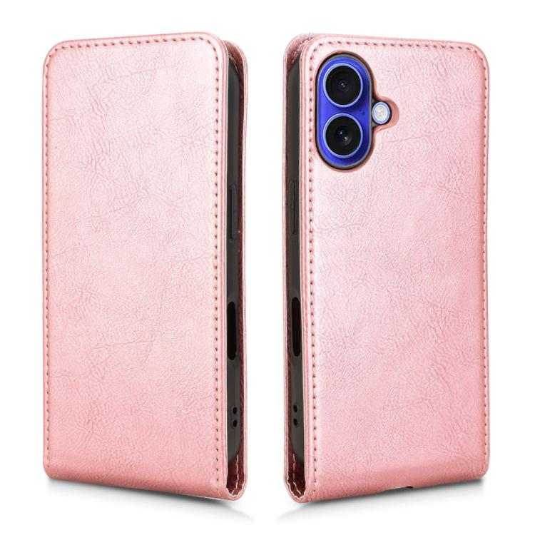 Funda de Cuero Magnética con Tapa Vertical para iPhone 16 Plus (Oro Rosa)