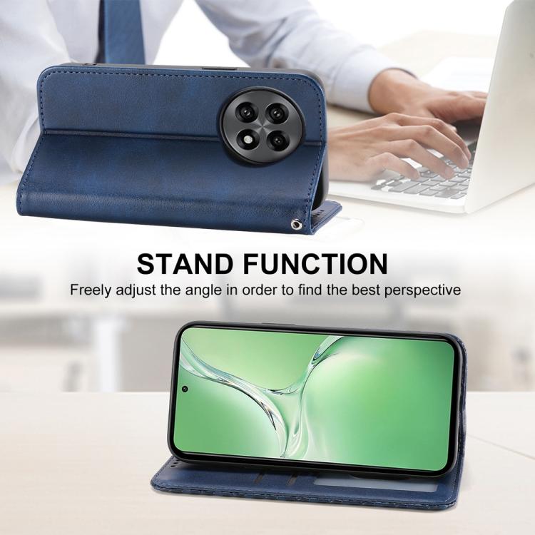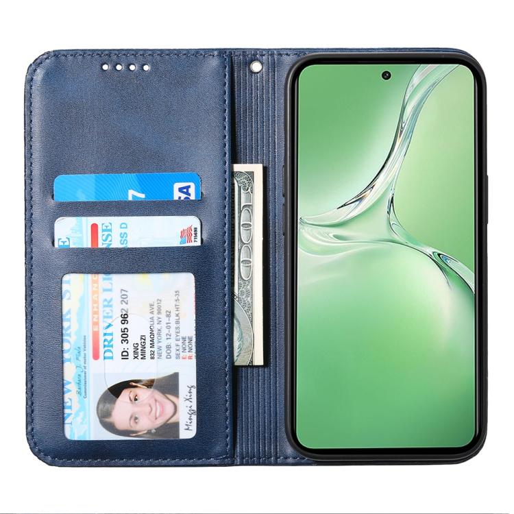 Funda de Cuero Magnética Textura Becerro y Cuadrícula Cúbica para OnePlus 13R / Ace 5 / Ace 5 Pro (Azul)