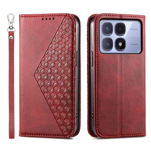 Funda de Cuero Magnética con Textura de Becerro y Cuadrícula Cúbica para Redmi K70 Ultra (Rojo)