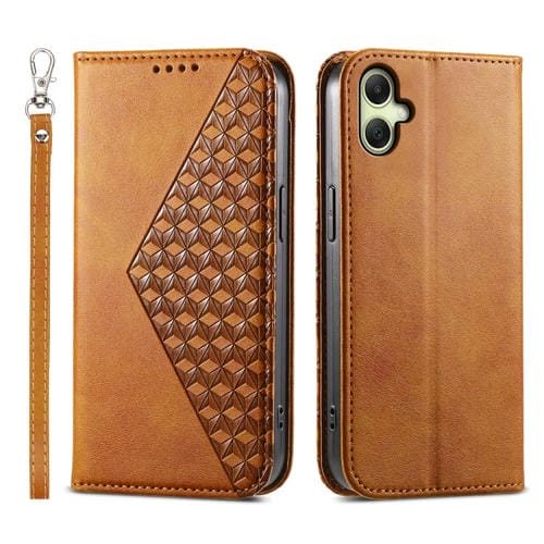 Funda Cuero Magnética Samsung Galaxy A06 4G Textura Becerro Cuadrícula Cúbica (Amarillo)