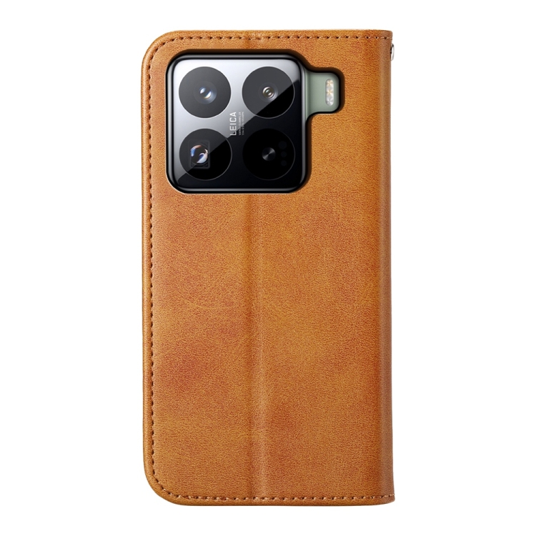 Funda De Cuero Magnética Con Textura De Becerro Y Rejilla Cúbica Para Xiaomi 15 Pro (Amarilla)